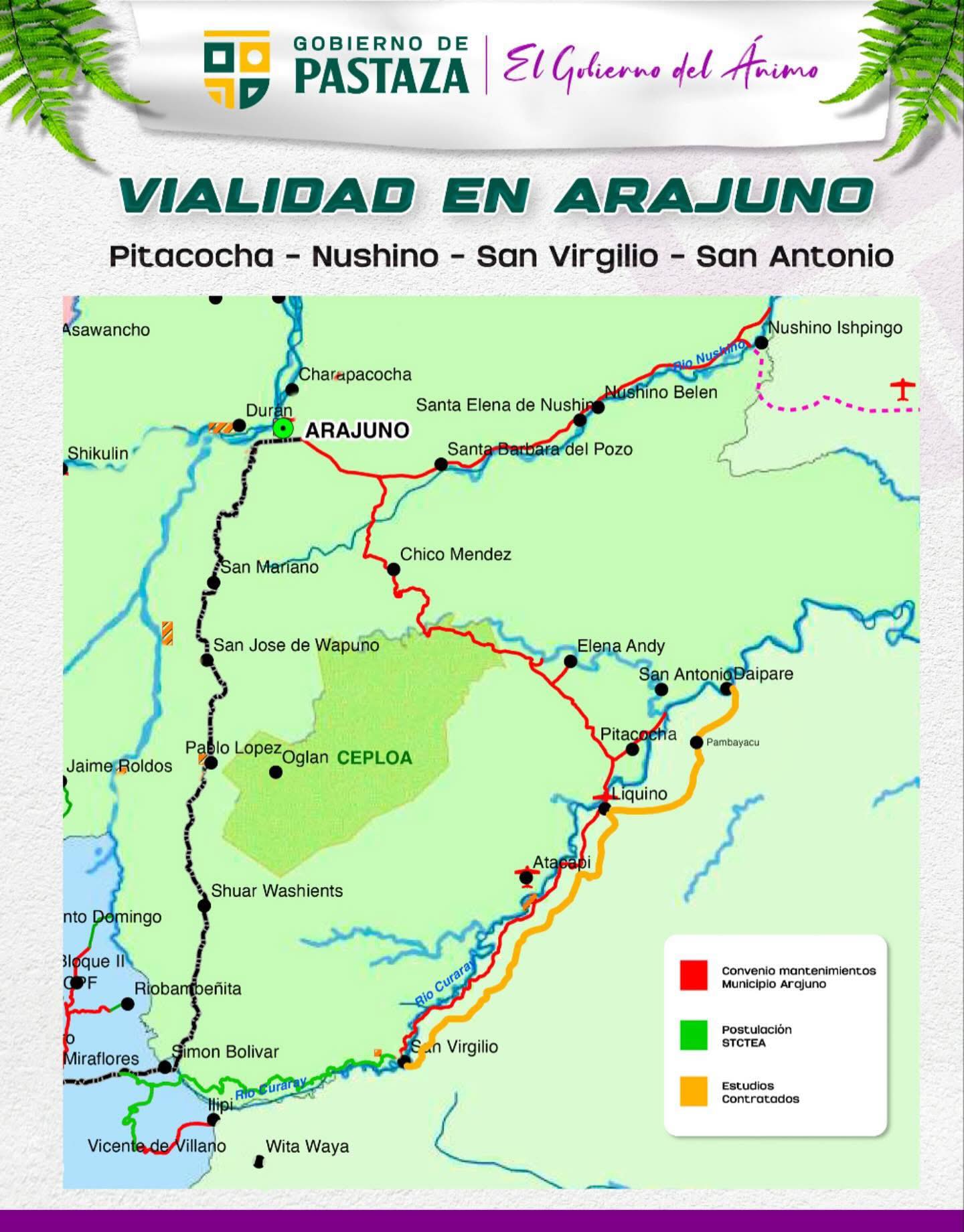22 km en estudio mediante consultoría para el asfaltado del tramo San Virgilio – Liquino – Pambayacu – Daipare – San Antonio. Este tramo contempla los estudios de 5 puentes en los sectores de: