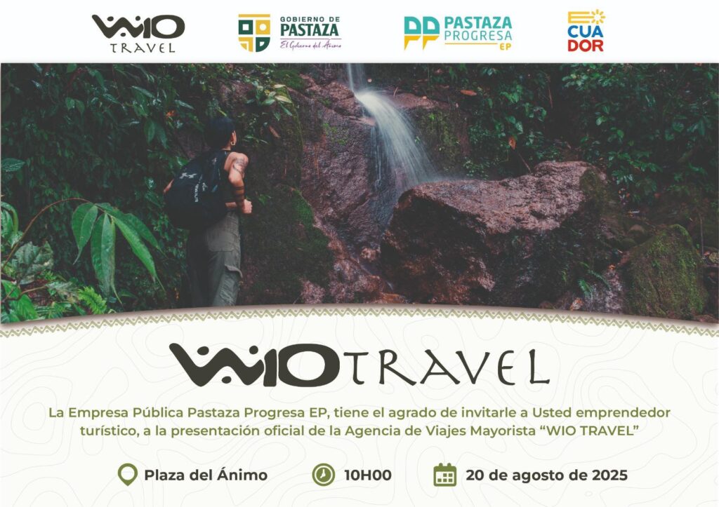 #Pastaza da un gran paso en turismo sostenible! Bajo la visión del prefecto André Granda, el Gobierno de Pastaza y la Empresa Pública Pastaza Progresa EP, nace WIO TRAVEL, la primera agencia mayorista que conectará a los viajeros con la riqueza natural, cultural y espiritual de nuestro territorio. Te esperamos en la Plaza del Ánimo …