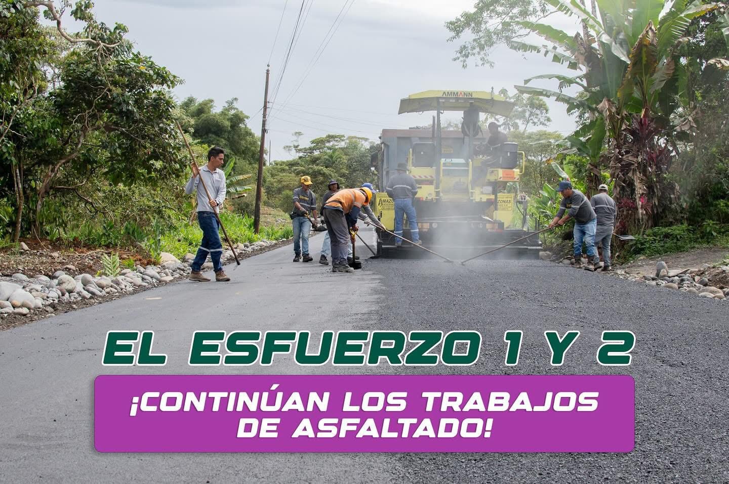 En El Esfuerzo 1 avanzan los trabajos de asfaltado de la vía que conecta Diez de Agosto con El Triunfo.