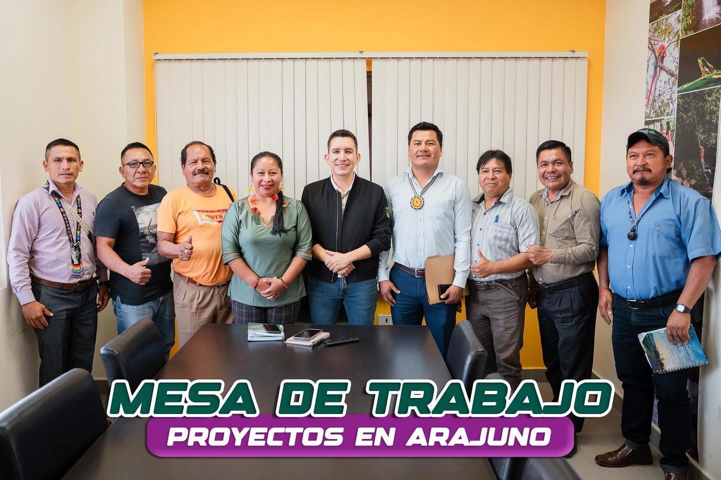 junto a la Viceprefecta, Lineth Calapucha, el Alcalde de Arajuno, Darwin Tanguila, dirigentes, técnicos y funcionarios, participaron en una mesa de trabajo dedicada a la planificación y seguimiento de proyectos estratégicos para el cantón, con especial atención a la vialidad, en beneficio de varias comunidades y del casco central de Arajuno.