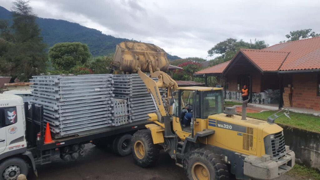 de 15 metros de longitud, que serán colocadas en el sector Quebrada Negra, tramo Papallacta-Baeza E20. Trabajamos para recuperar la conectividad vial hacía la provincia. 👷Personal y maquinaria del MTOP a cargo del armado y lanzado de la estructura. Vía cerrada. vía Alterna: Pifo – Ambato – Puyo – Tena.