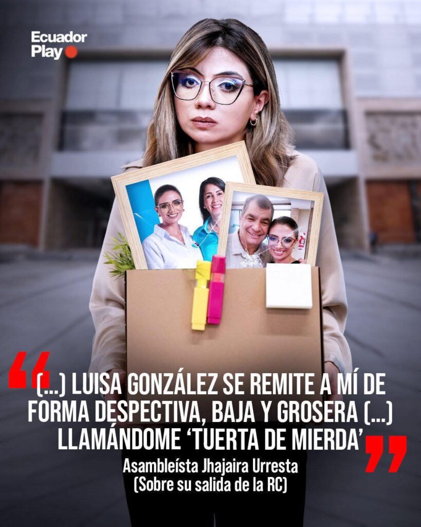 luego que llegaran a sus manos supuestos chats en los cuales la excandidata presidencial, Luisa González, se refirió a la legisladora de manera despectiva. Entre lágrimas, Urresta señaló que le pidió una explicación a Luisa González, sin embargo, la excandidata le habría respondido con “¿Qué tengo que aclararte?”