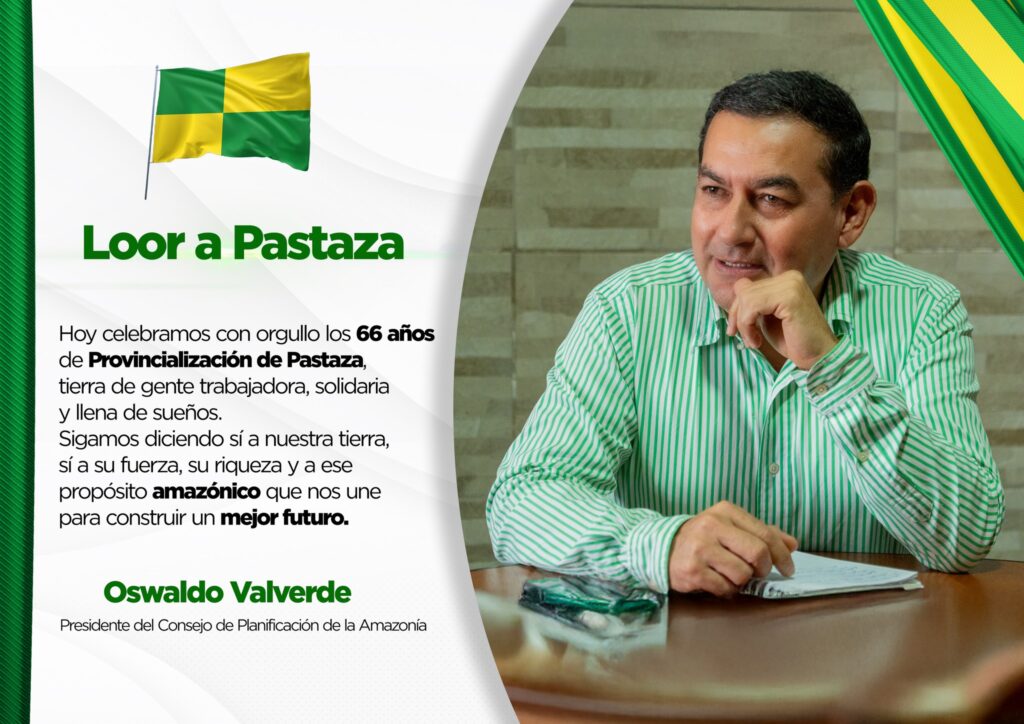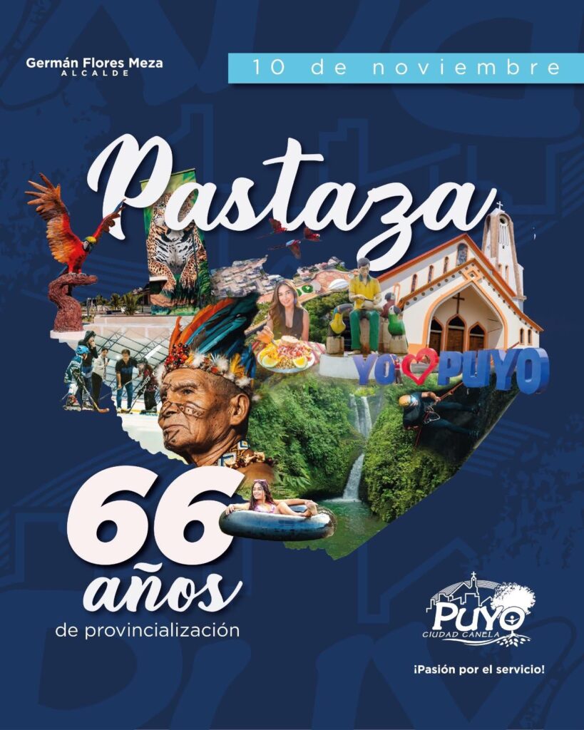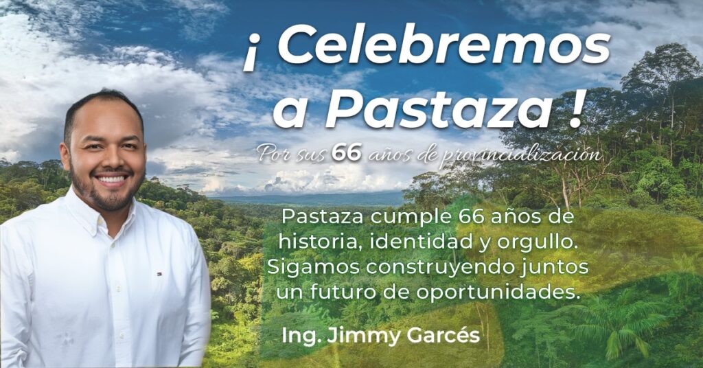 El GAD Municipal del Cantón Pastaza, su Alcalde Germán Flores Meza, las señoras y señores Concejales y todo su equipo de trabajo rinden homenaje a nuestra querida Provincia, tierra de riqueza natural, cultura viva y gente trabajadora. Nuestro compromiso siempre será el de trabajar por el bienestar y desarrollo de nuestro cantón y provincia de …