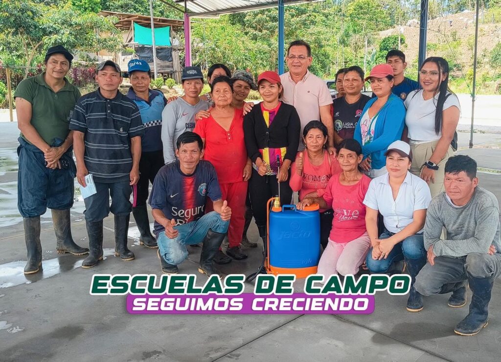 Durante la jornada se entregó una bomba de fumigar, se aplicó biofertilizante del Biocentro de Fátima en los cultivos de papa china, café y cacao, y se realizó el trasplante y enfundado de plántulas de café. Estas acciones se desarrollaron con la presencia del Director de Desarrollo Sustentable, Patricio García, responsable de impulsar estas labores …